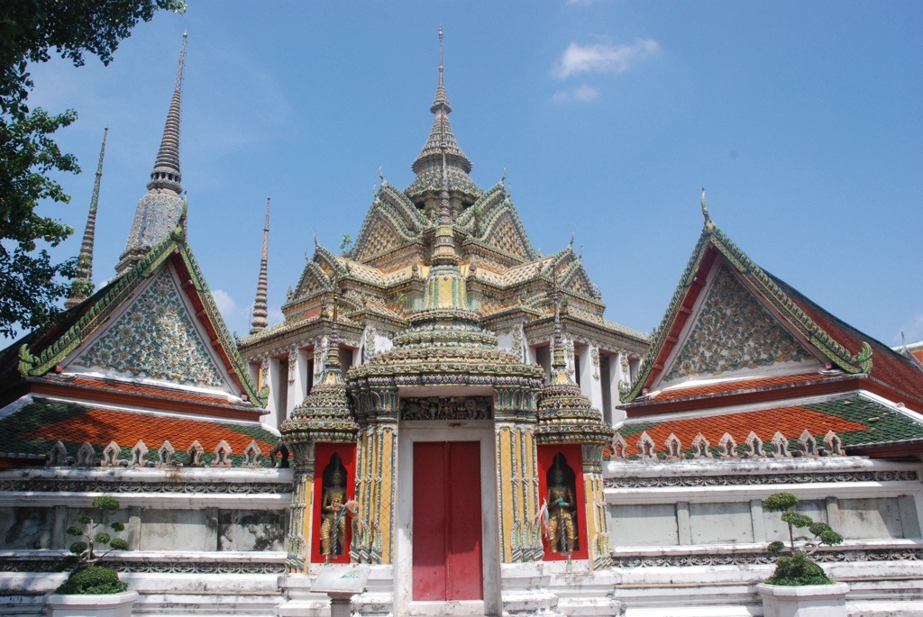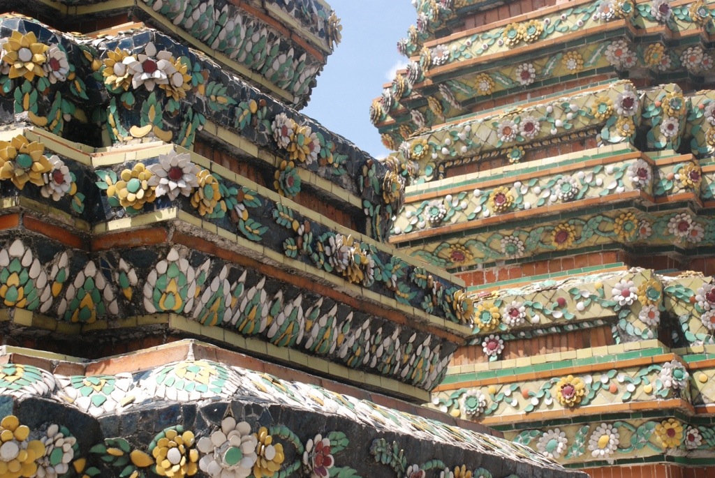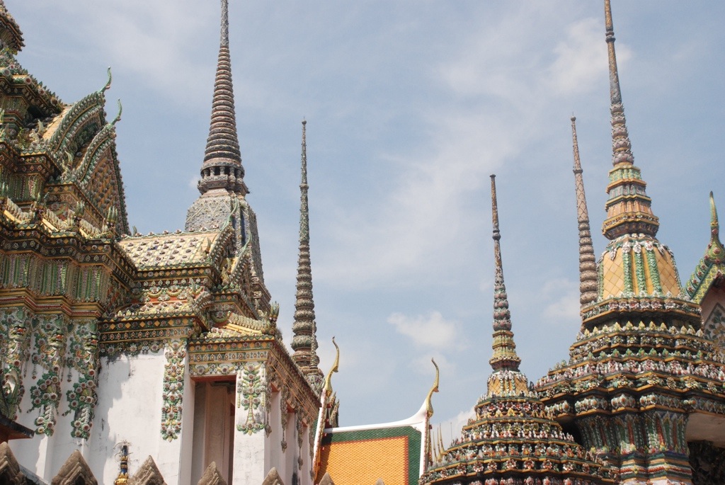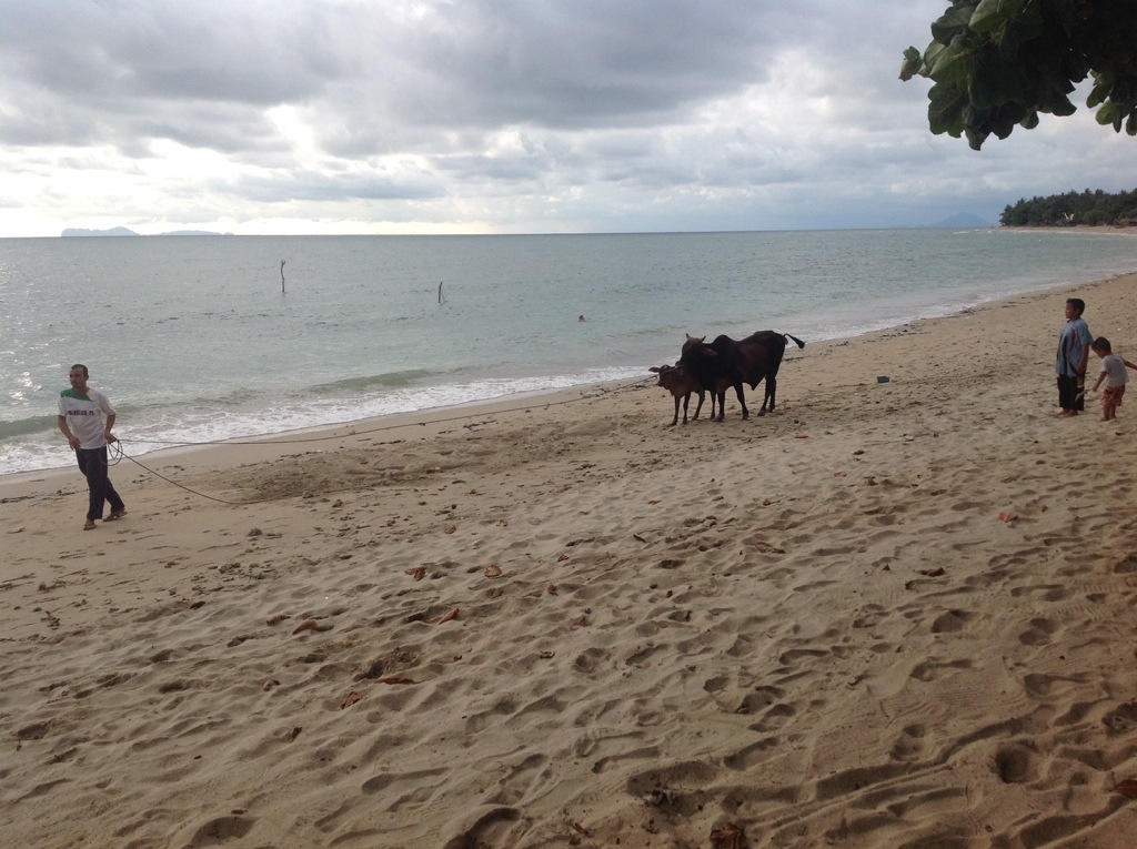 In approximate order, these are from a small wat that I cannot remember the name of, Wat Pho, the Grand Palace and Shrine of the Emerald Buddha, and Koh Muk. Sunsets are off Koh Lanta. As are the cows that somehow ended up at the beginning of the list. The rooftop view is from our hotel in Bangkok.